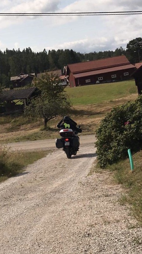 Semestertripp i dagarna 3. För första gången i mitt liv ska jag åka på semester på mc. Spännande! Och hur ska jag packa. Jag är ju en sån där person som vill ha bra-att-ha-grejer med mig. Om det är snyggt spelar ingen roll. Vi packar oss iväg. Första etappen 20 mil. ”Huvaligen”, min rygg och mina ben. Aj,aj,aj. Lång fikapaus hos bekanta.